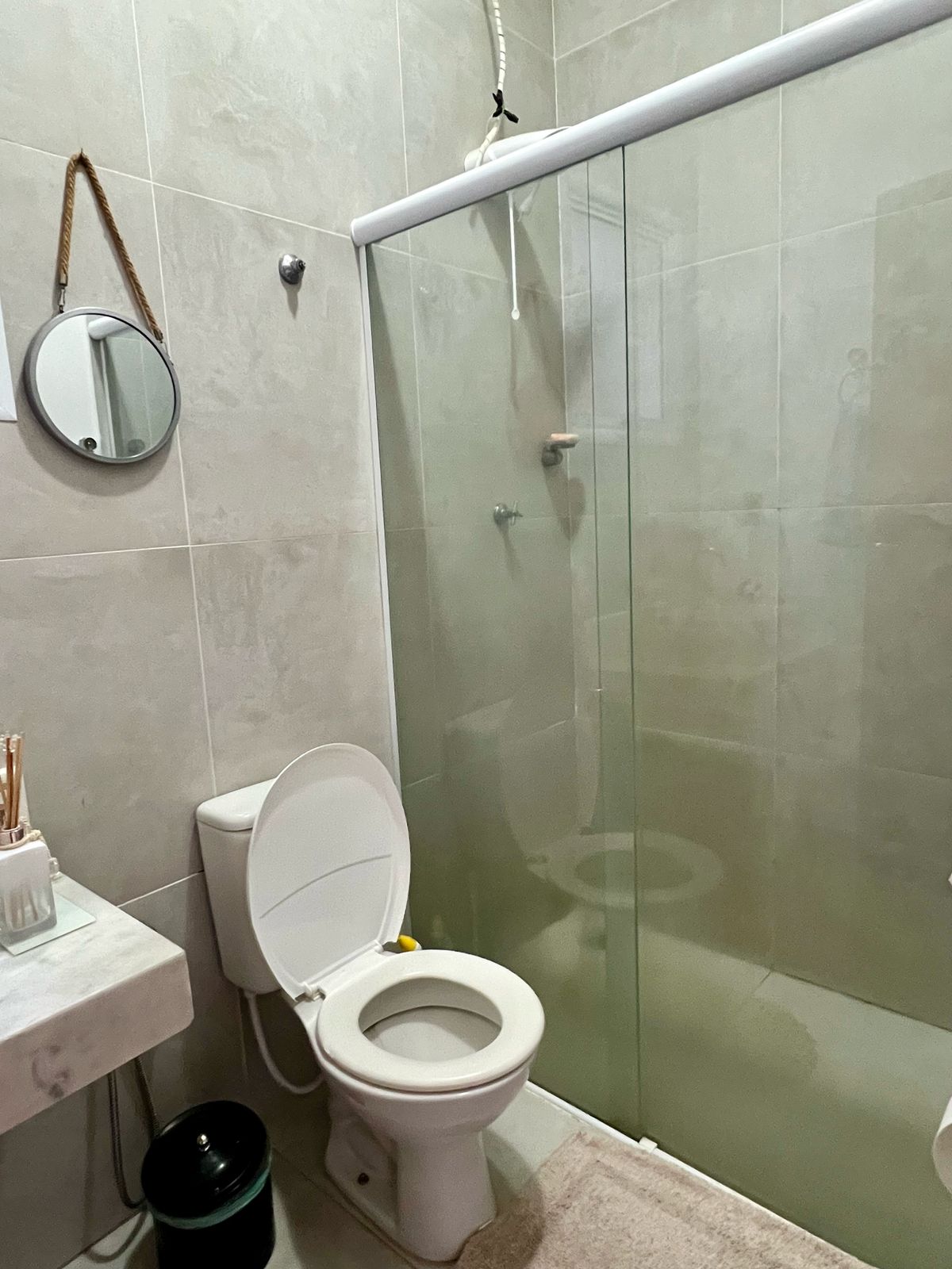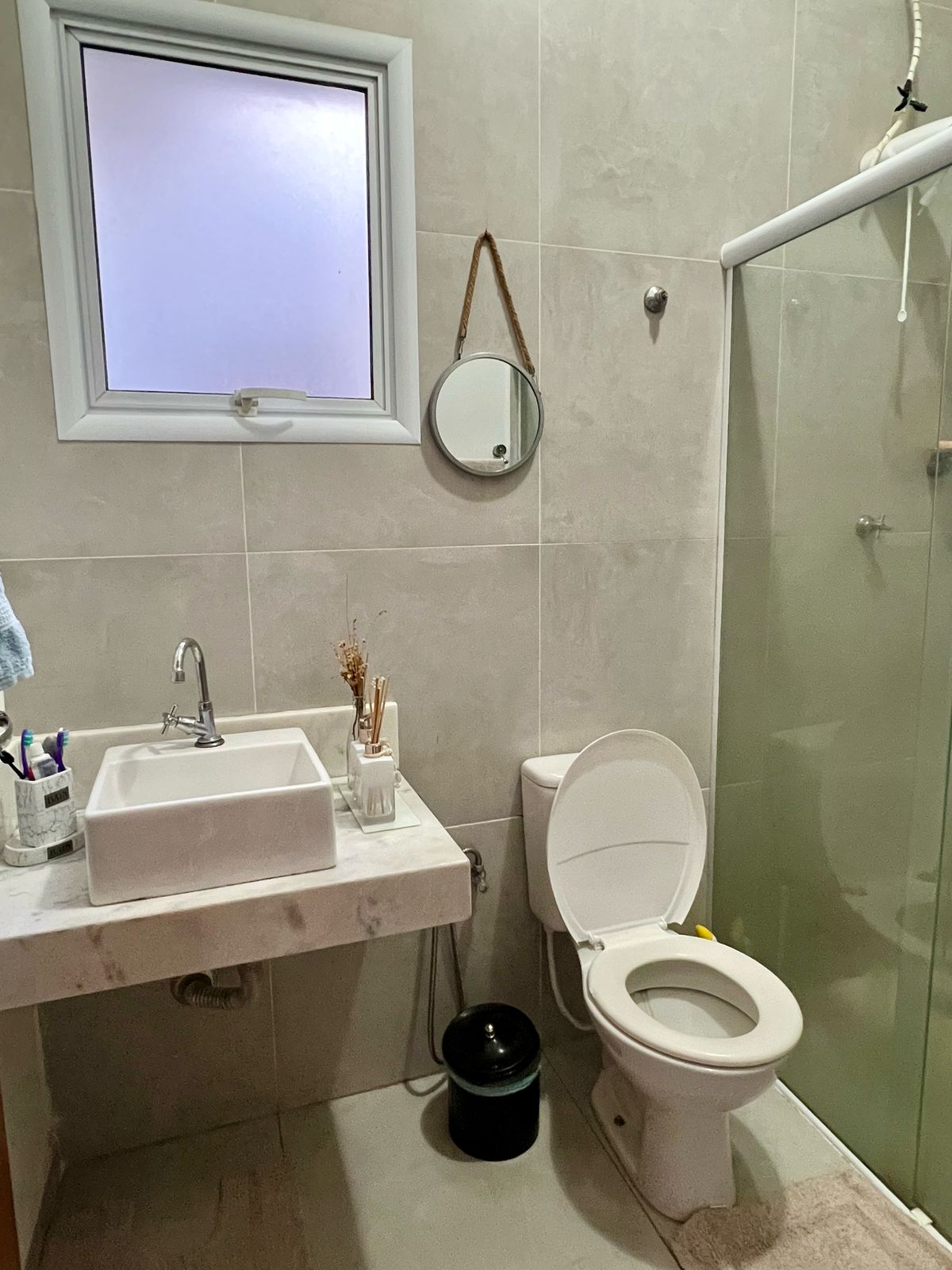 Banheiro social com ótimo acabamento e ventilação natural;