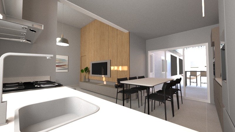 Sala de estar e jantar integradas, proporcionando amplitude e convivência;