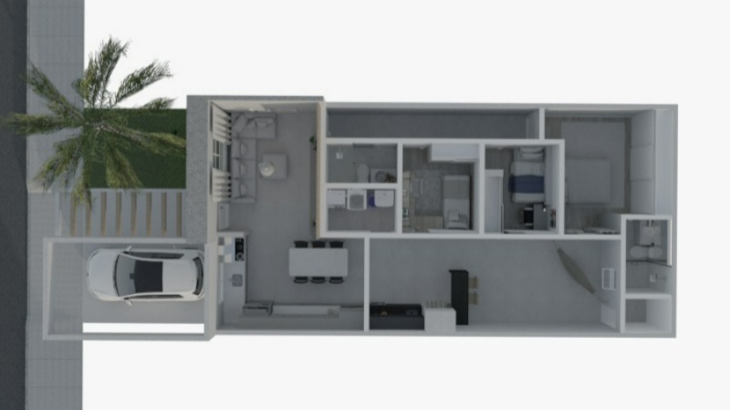Esta residência conta com 120 m² de área construída, distribuídos de forma funcional em: