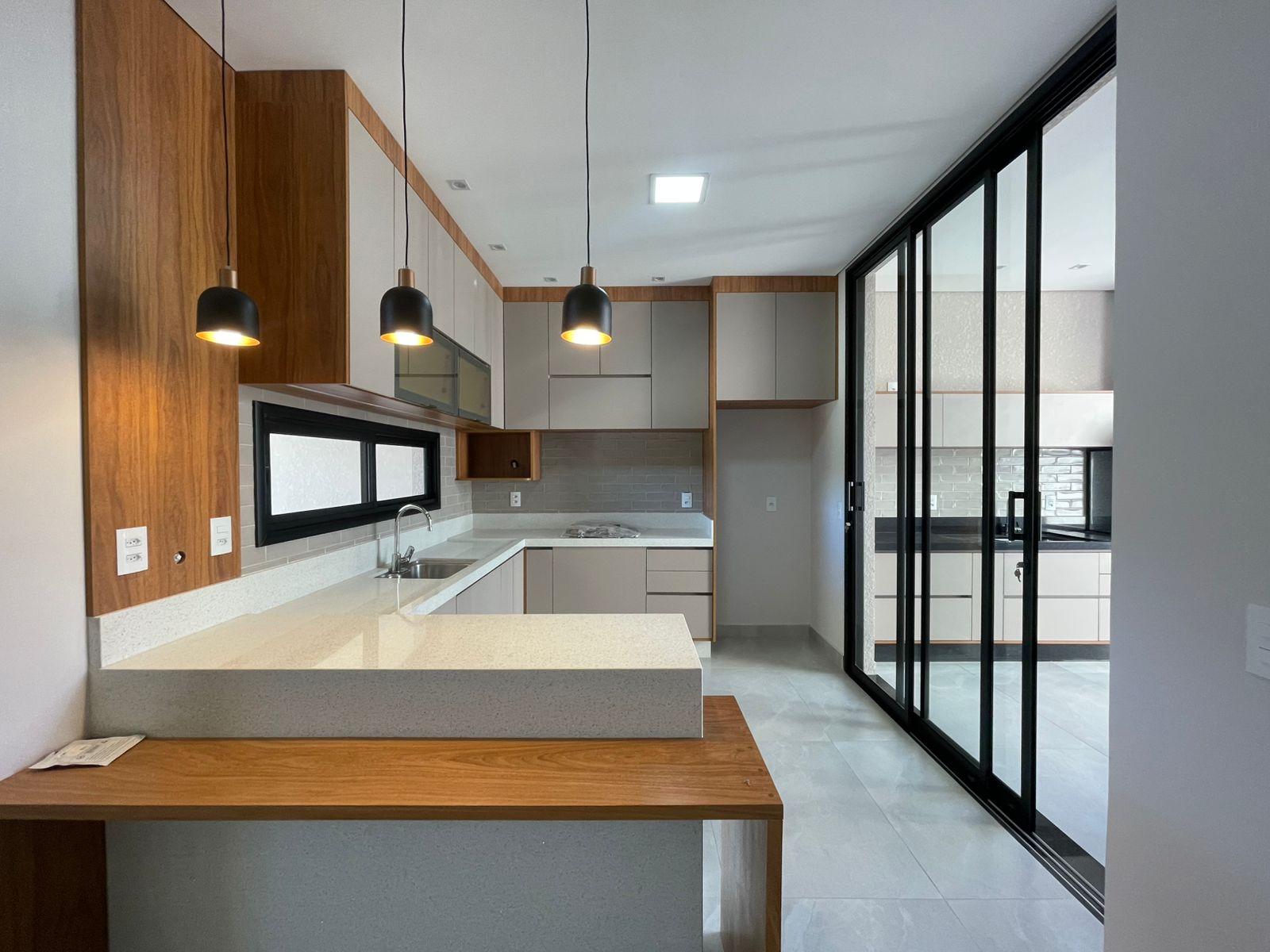 Área gourmet com churrasqueira de vidro