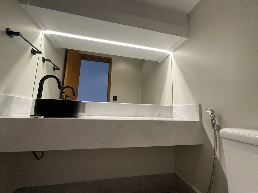 Marcenaria sob medida no closet, banheiros, cozinha, home-office e área de serviço;