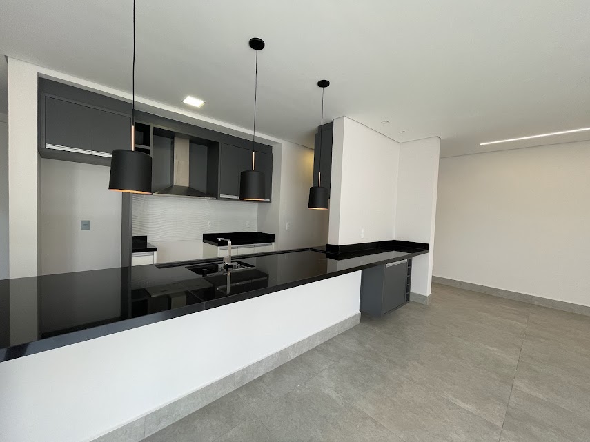 Cozinha integrada à sala de jantar e estar;