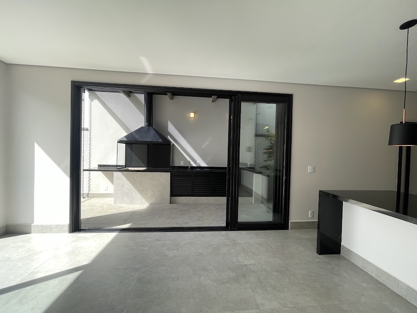 Armários em alumínio preto fosco na área gourmet;